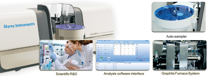 Skyray Instruments releases new AAS8000 Graphite Furnace Atomic Absorption Spectrometer suitable for trace and ultra-trace metallic elements test, covering over 60 elements. It is highly sensitive, with low limit of detection and less sample volume, especially suitable for testing Cd, Cr, Pb, Al, Mo, etc. AAS 8000 (with graphite furnace auto sampler) and AAS 8000-M (without graphite furnace auto sampler) feature low detection limits, highl sensitivity and Skyray state-of-the-art user friendly software.