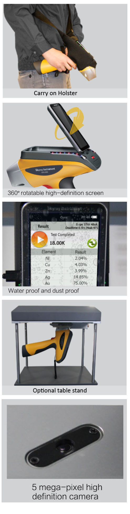 Skyray Instruments 6th generation Explorer Handheld X-Ray Fluorescence Spectrometer is our best and most advanced Handheld XRF. Performance and accuracy of a Desktop X-Ray Fluorescence Spectrometer combined with convenience and portable size factor of a Handheld XRF. EXPLORER introduces newer digital multi-channel technology, lower detection limits, high stability and wide application range making the instrument capable of virtually any XRF application.