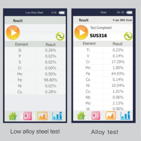 Explorer XRF features Skyray newest intelligent software, making a Handheld X-Ray Fluorescence Spectrometer as easy as your everyday appliances. Specifically developed to simplify operation and user involvement most users can now learn how to operate the instrument in minutes. Skyray Intellectualized software is used across all applications modes. Up to 5 software databases can be configured on a single Explorer XRF-including Alloy Analysis, Soil analysis, RoHS and Mineral Analysis .With minimalistic modern layout, easy database switching and one click testing one Explorer XRF can replace up to five competitors Handheld XRFs.